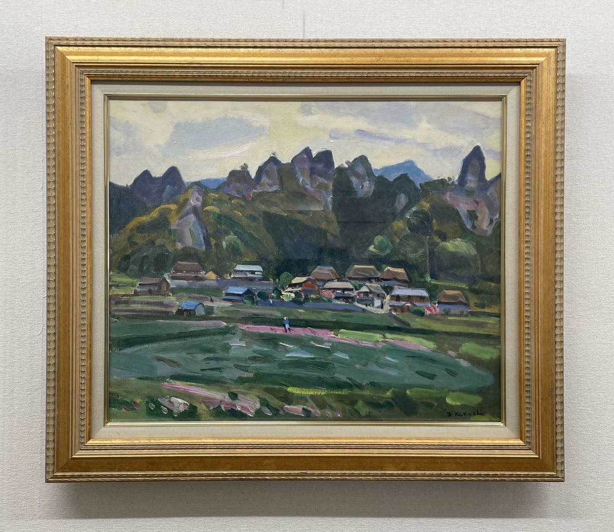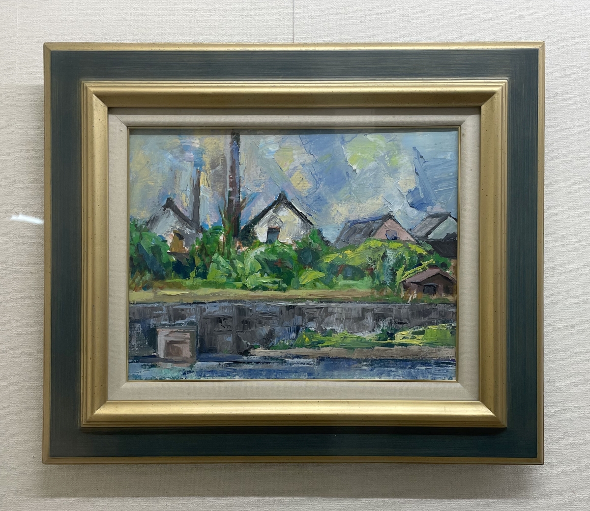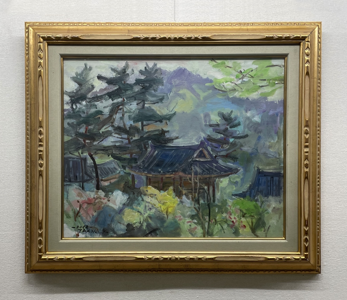 鹿島美術人協会結成時に事務局を運営されていた金子剛さんの作品「韓国公子里風景」は、韓国の伝統的な建造物が残る村の風景が描かれています。若葉や花が新しい季節の始まりを感じさせます。